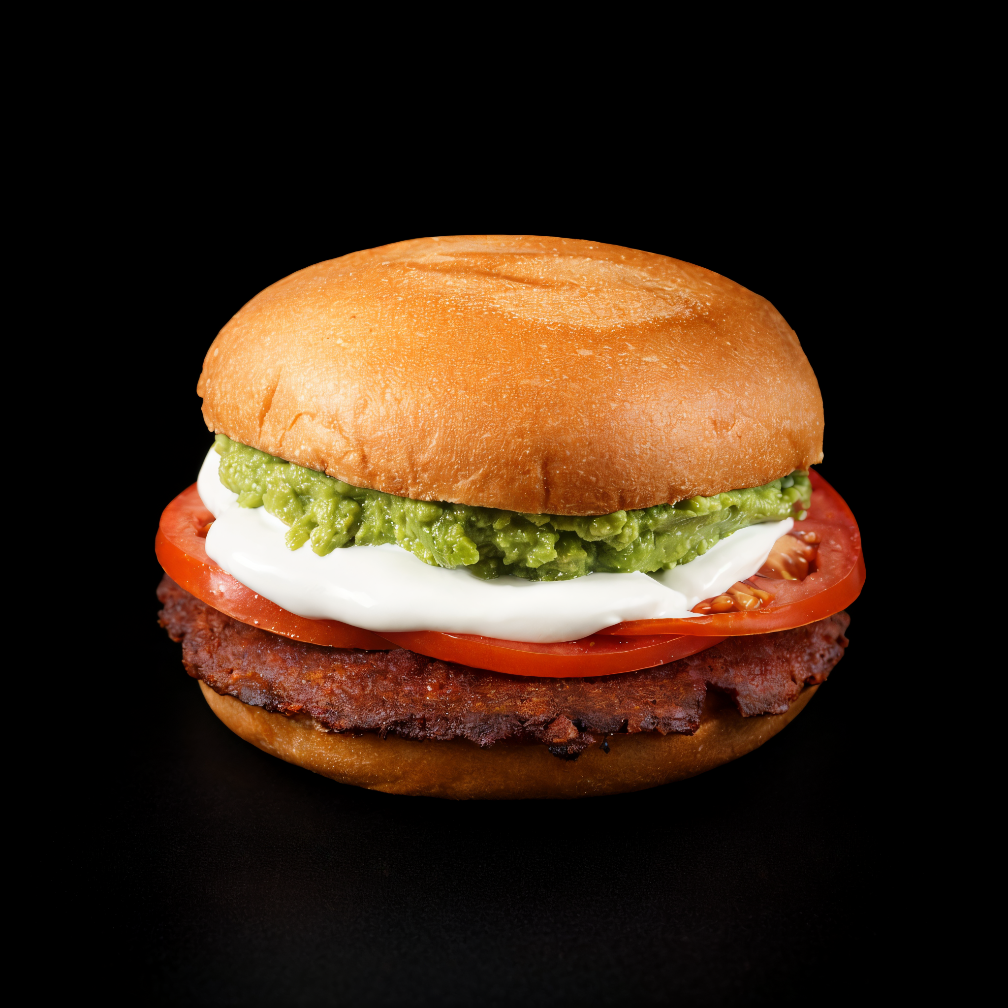 Hamburguesa plant based, tomate, palta y mayonesa vegana.